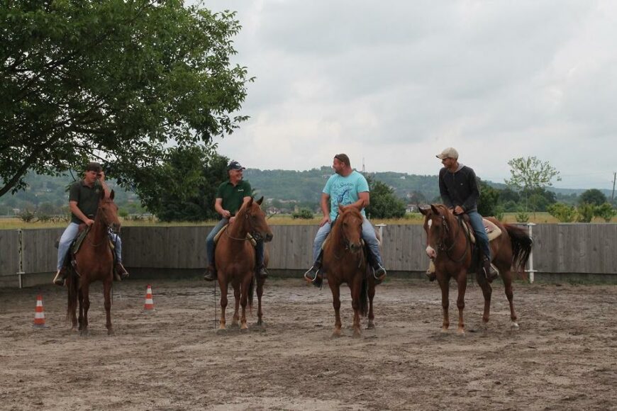 … na hrbtih ameriških quarter kobil 🙂 (pod delovnim imenom: “klinika g. Žurja”) Blaž & Sweety, Jur & Doti, Marko & Julia in Gorazd & Thelma G. Žur daje nasvete pred pričetkom… Ogrevanje. In še ogrevanje. “Mom? Mommy?! Ma! ….” “Vidiš, tista je Snapperjeva, se vidi …” “… in ena, ki ni …” Vsaka ma svoj … karakter na hrbtu 🙂 ⇨